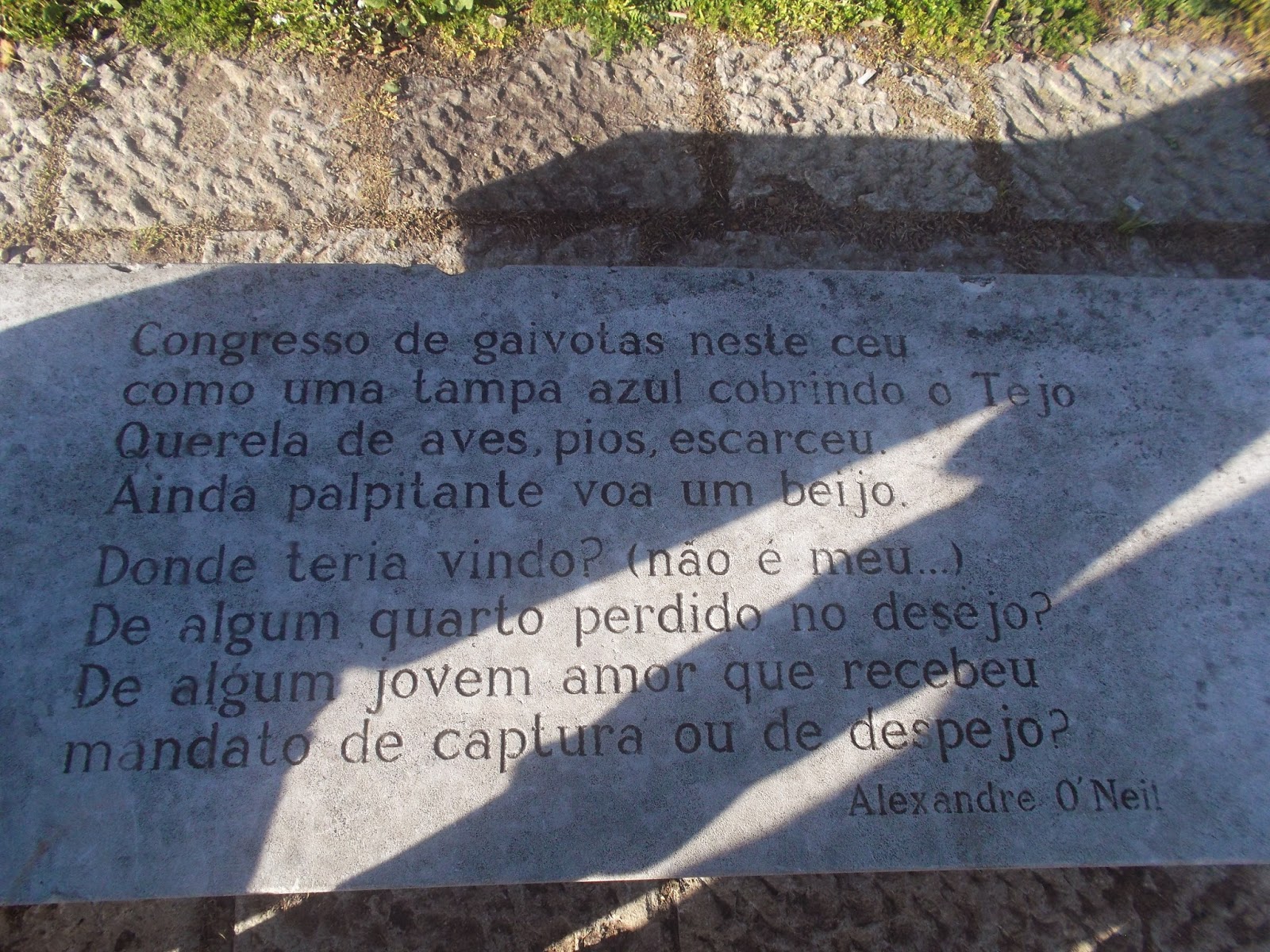 Em frente a torre de Belém podem encontrar bancos de pedra com excertos de poemas de alguns autores portugueses, onde se podem sentar e desfrutar da paisagem maravilhosa.