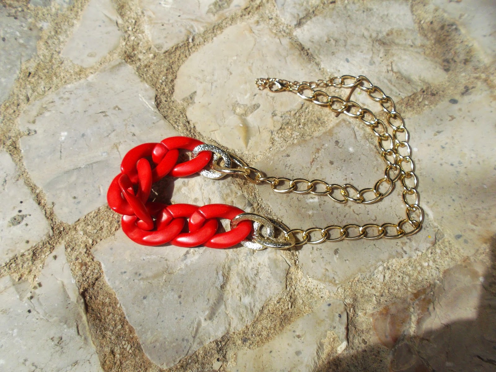 Hello everyone! Today I come - you show you the necklace I received from a partnership that the blog did some time with the online store Wholesale Fashion Jewelry Suppliers, arrived on schedule, came well packed, the necklace has two colors being golden metal and red piece of plastic.