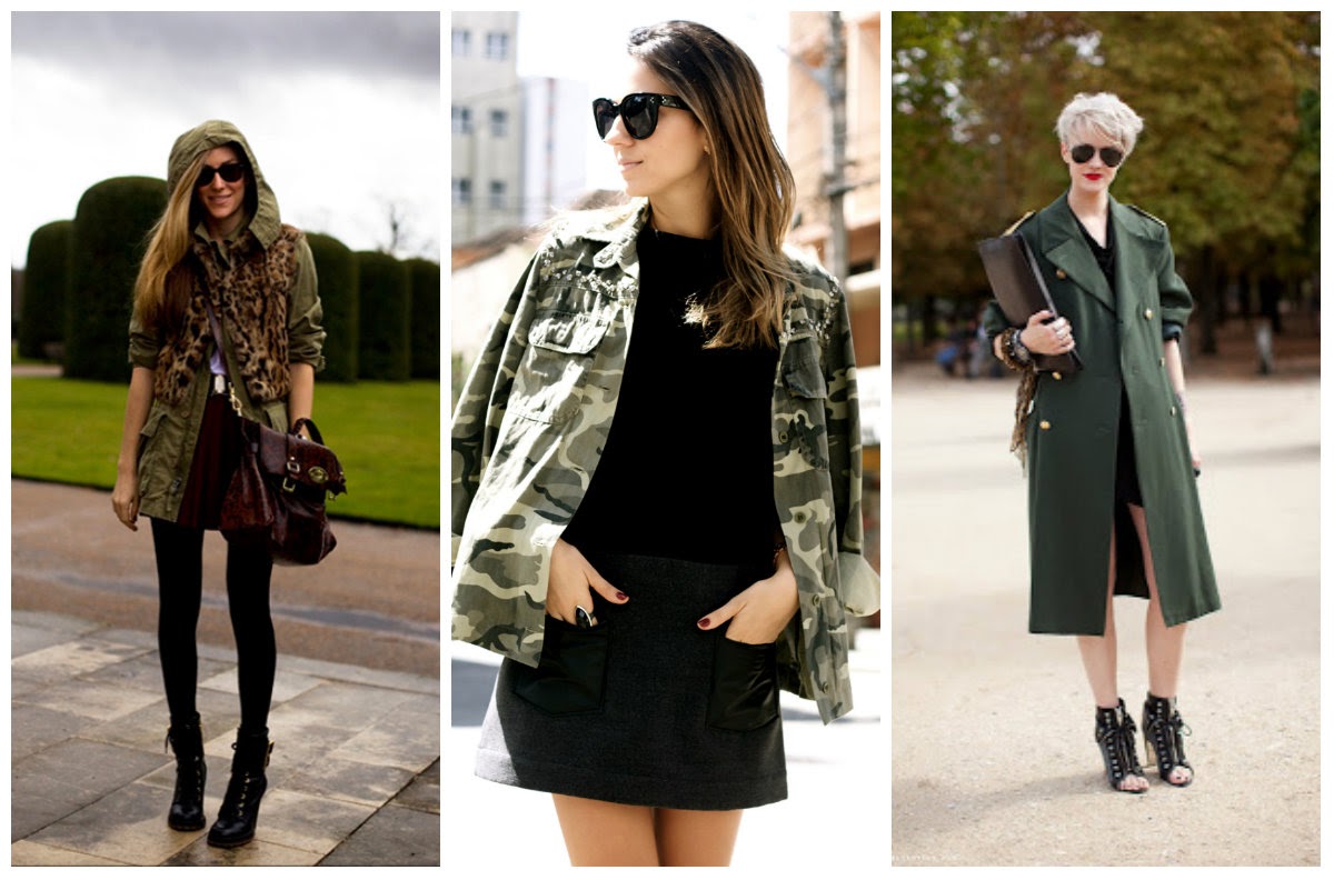 Hello everyone! A tendência militar invadiu as passerelles de Outono - Inverno o caqui como cor dominante recaindo sobe a disciplina e rigor nas fardas militares inspiraram diversos criadores as peças - chave são: casacos, botas e botins cintos de modo a conferirem uma cintura bem marcada, calças, calções e saias largas.